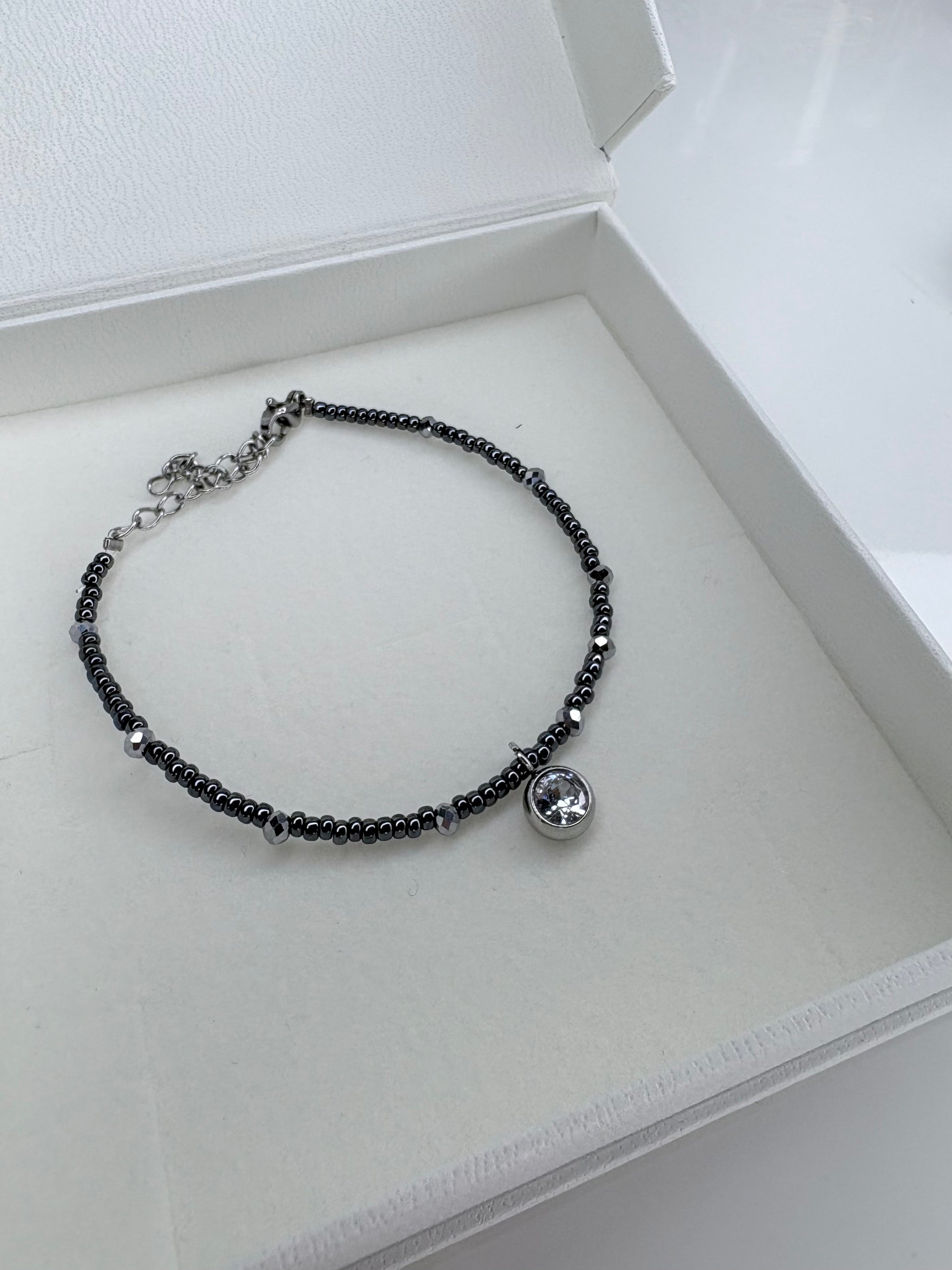 Нежна гривна с блестящ кристален акцент, изработена от висококачествени мъниста. Предлага се в два изящни цвята – Pink и Silver. Идеален избор за фин, но впечатляващ акцент към всяка визия.