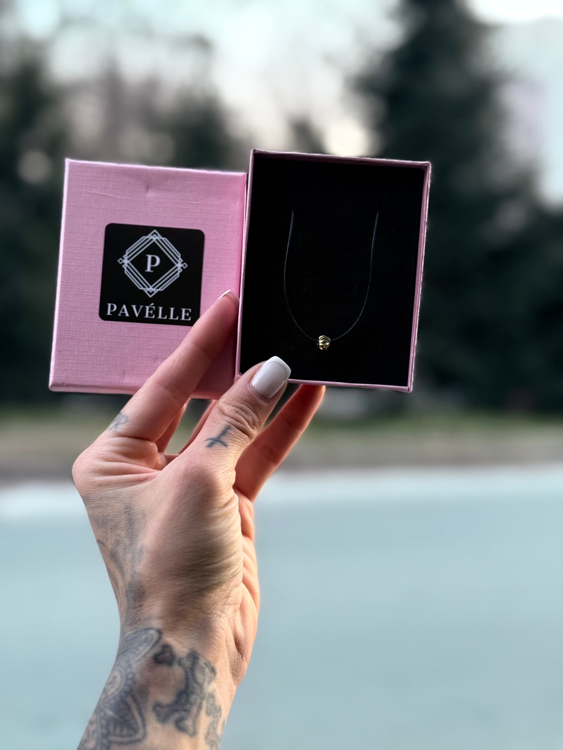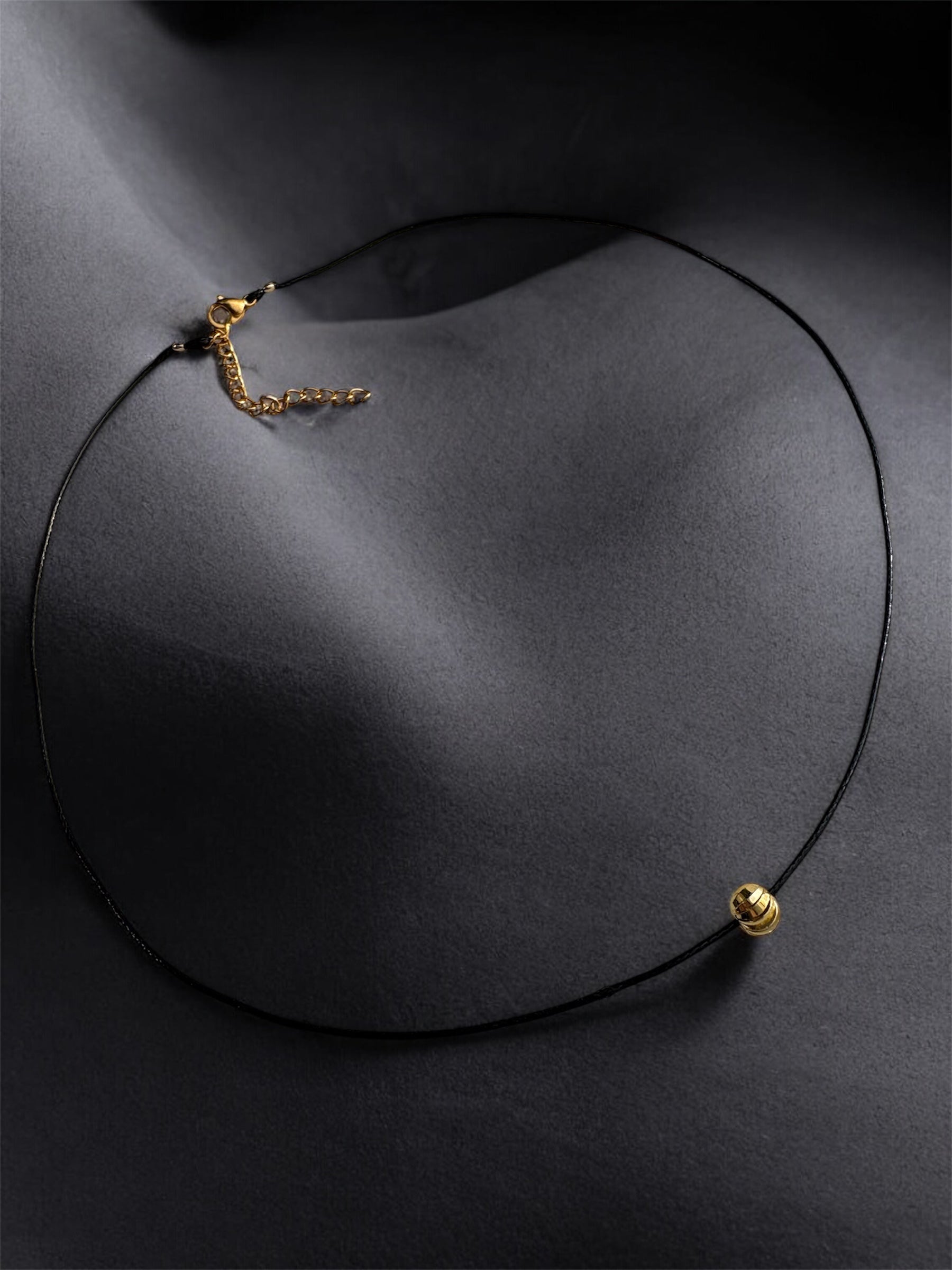 Минималистично бижу от черен кожен конец с 18К позлатено топче и закопчалка от позлатена стомана. Елегантен акцент за всеки ден с усещане за стил и изтънченост.✨